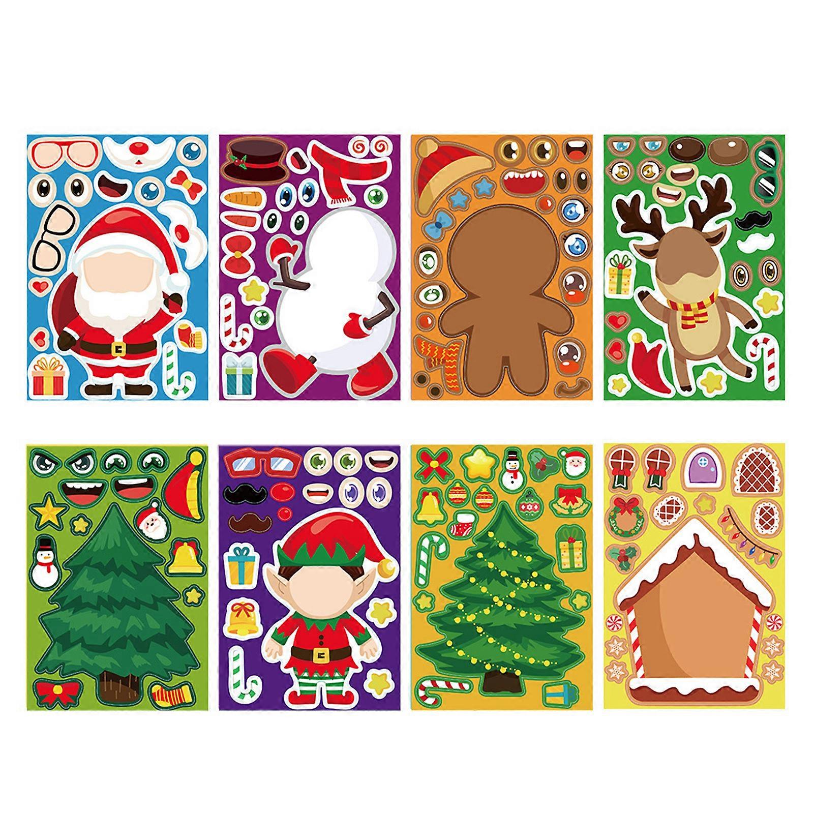 8Pcs/Set Christmas DIY Assemble Puzzle Sticker Toys Cute Santa Claus Xmas Tree Socks Cartoon Stickers Children Make-A-Face Stickers Parent-child Inter