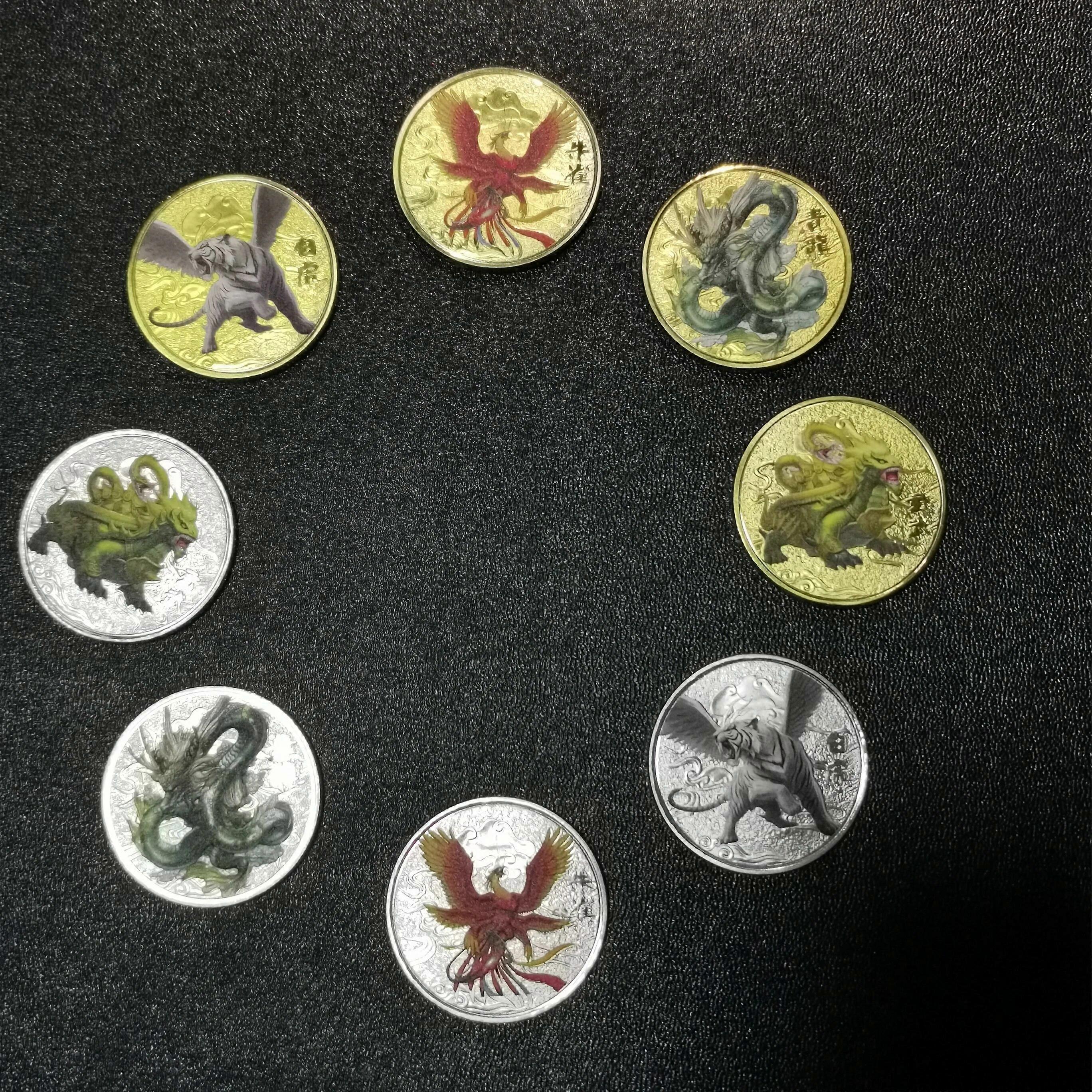 8Pcs/Set Chinese Mythical Creatures Painted Collectible Coins Abstract Dragon Tiger Phoenix Souvenir Coin Feng Shui Decor Crafts