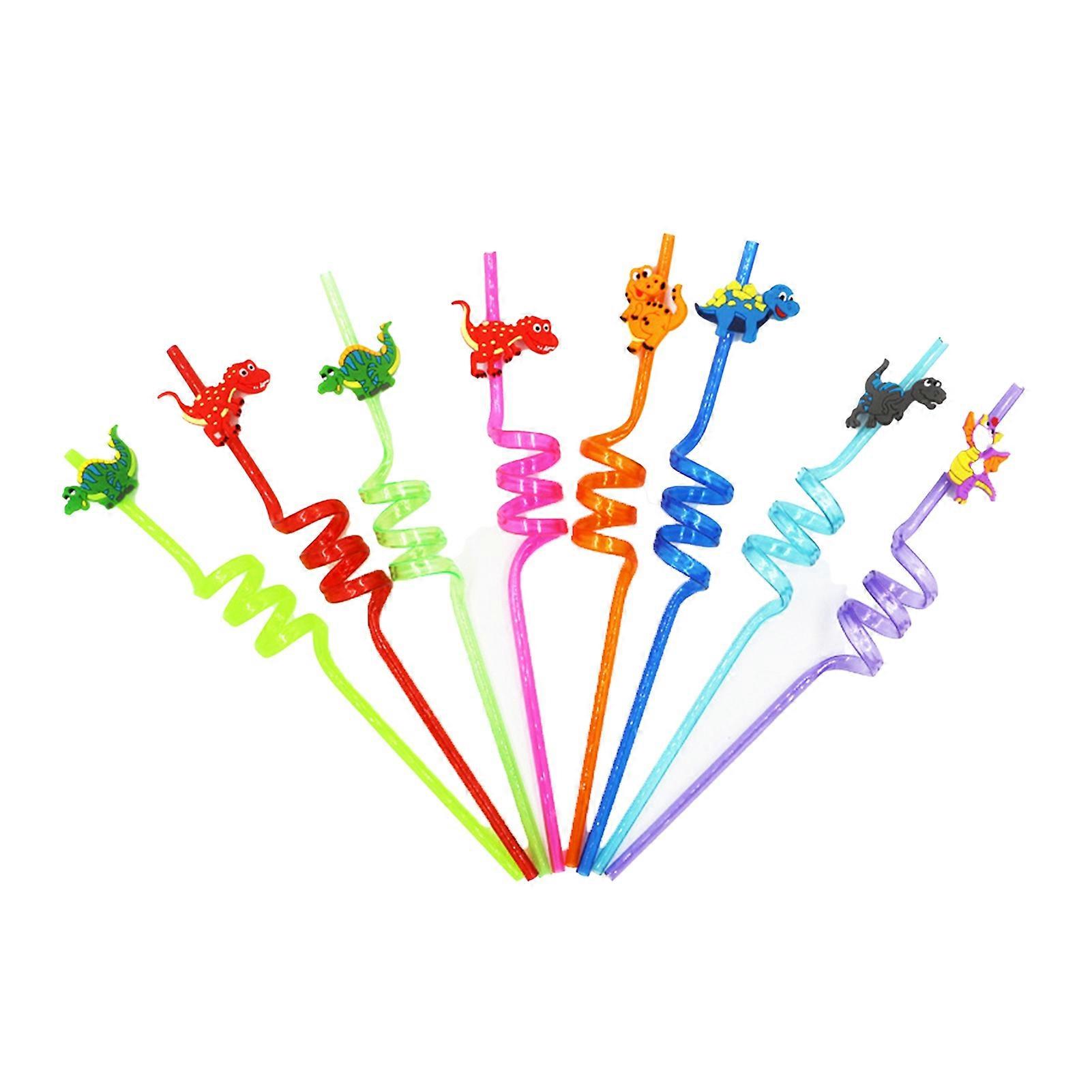 8Pcs/Set Lovely Dinosaur Decor Drink Straw Adorable Festive Touch PET Cup Straw for Kids Qinhai