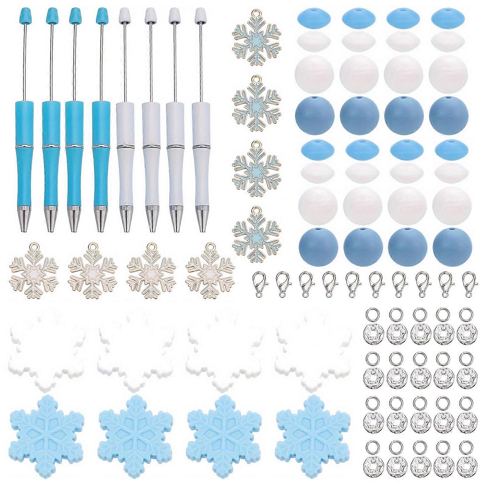 8Pcs Christmas Beadable Pen Set with Beads Lobster Clasps Snowflake Pendants for Women Kid Student Christmas Present