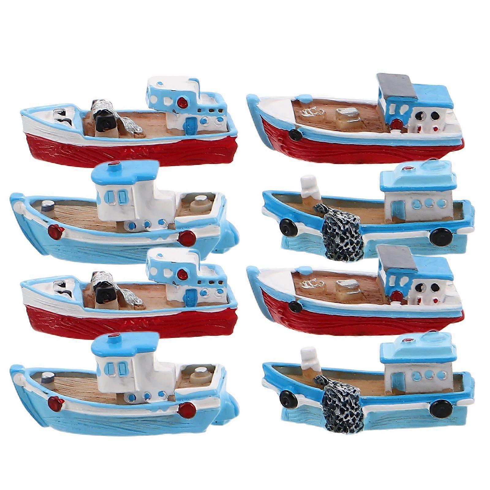 8pcs Miniature Fishing Boats - Mediterranean Style Mini Resin Nautical Boat Ornaments - Tiny Sailing Canoe Models For Fish Tank Aquarium Beach Landsca