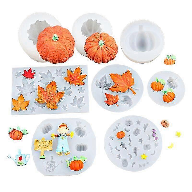 8Pcs Silicone Pumpkin Mould, Autumn Silicone Mould, Maple Leaf Mould, Silicone Resin Molds, for Autumn/Halloween/Thanksgiving/DIY Craft Decorations