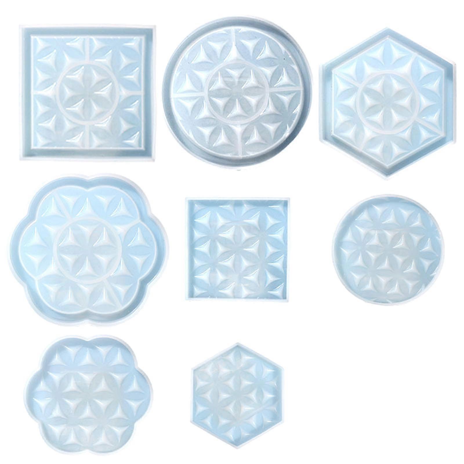 8Pcs Diy Crystal Epoxy Round Lace Hexagonal Square Coaster Silicone Mold Dish Tray Mold for Casting Concrete Cement