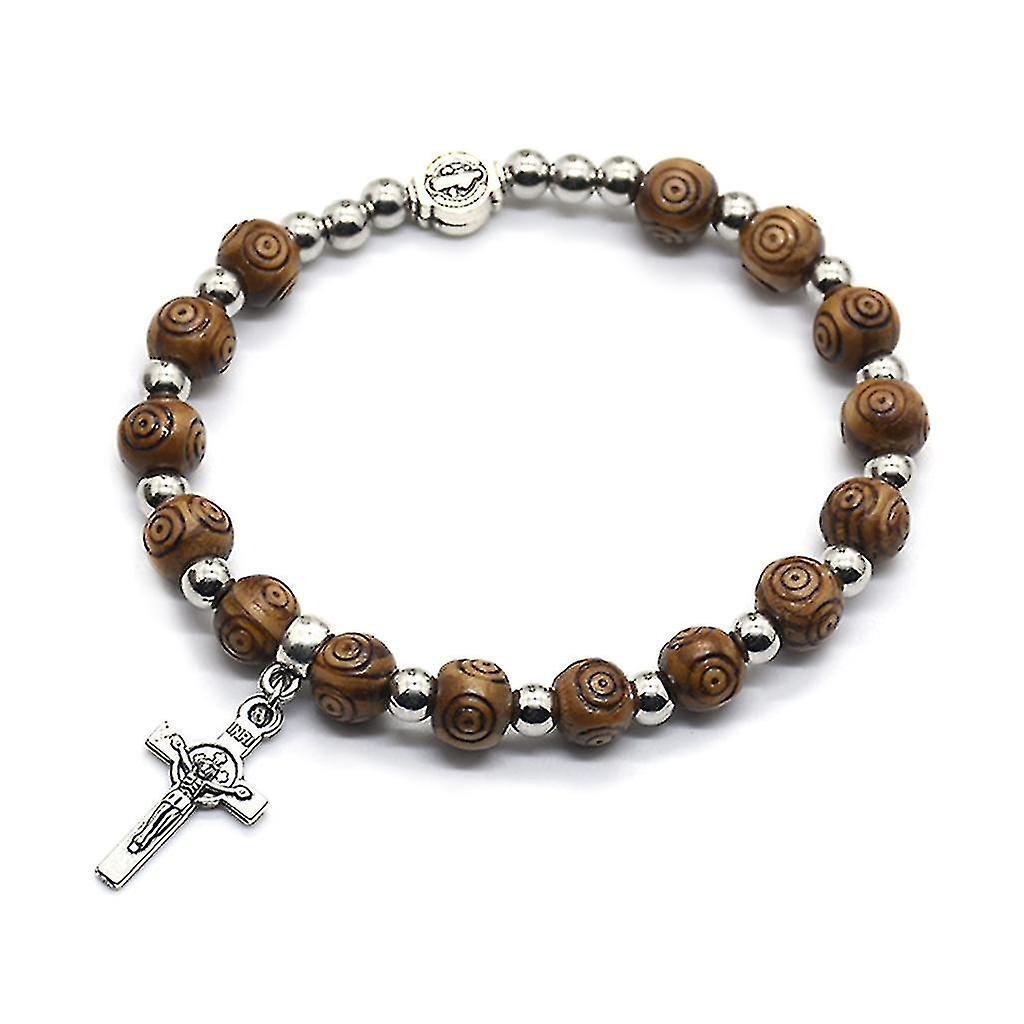 8mm Wood Beads Rosary Bracelet Vintage Jesus Christ Crucifix Cross Wristband Chain Bracelets Men Unisex Jewelry Charm Gift