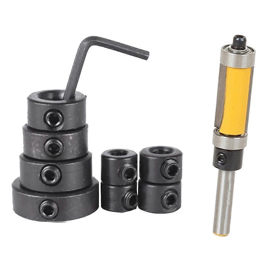 8 Drill Depth Stop Collar+Hex Wrench+Flush Trim Bit 1" Cutter Bearing