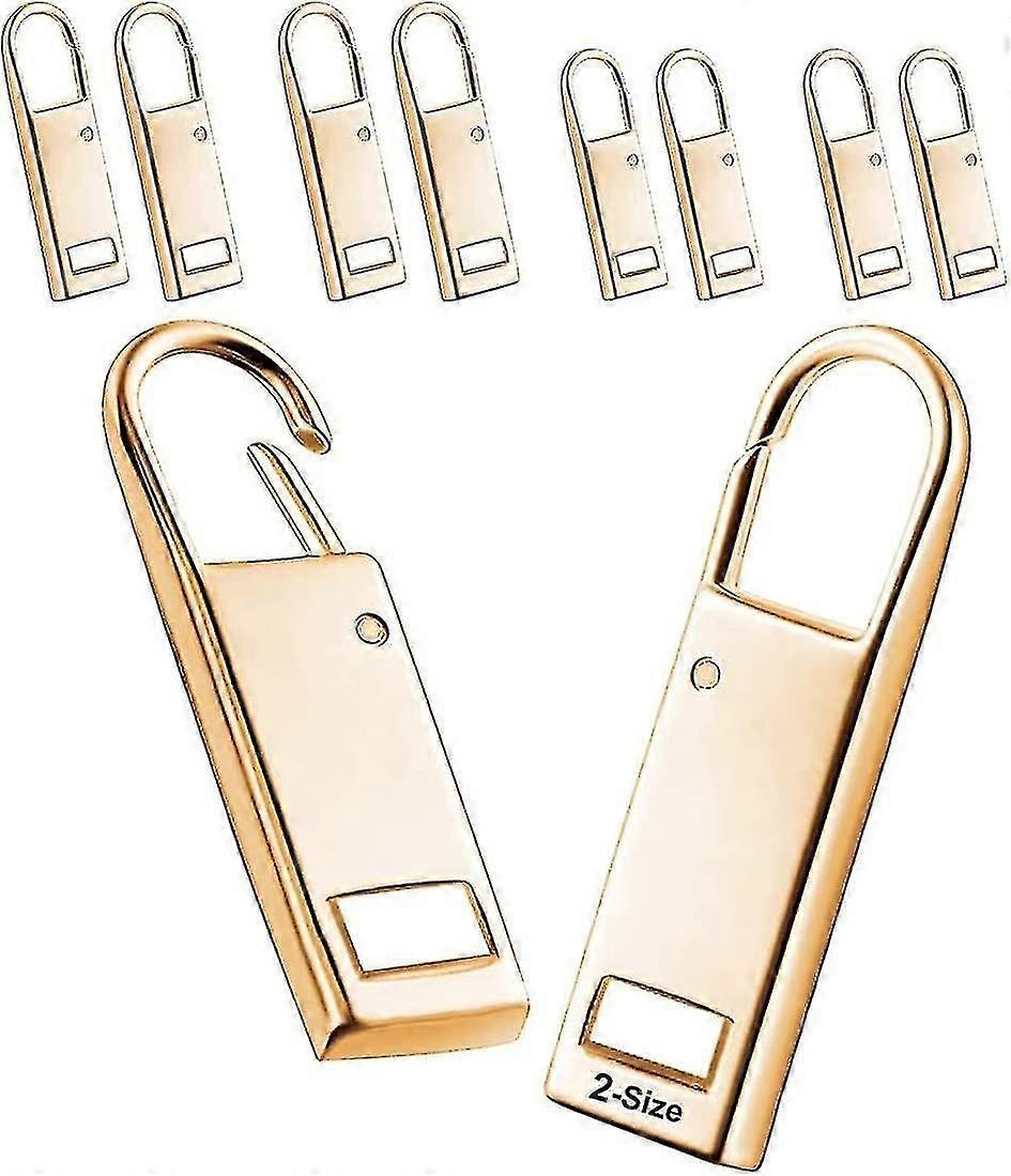 Gold Zipper Repair Pulls Set of 8, Replacement Zip Tabs for Suitcases, Backpacks, Zipper Fasteners