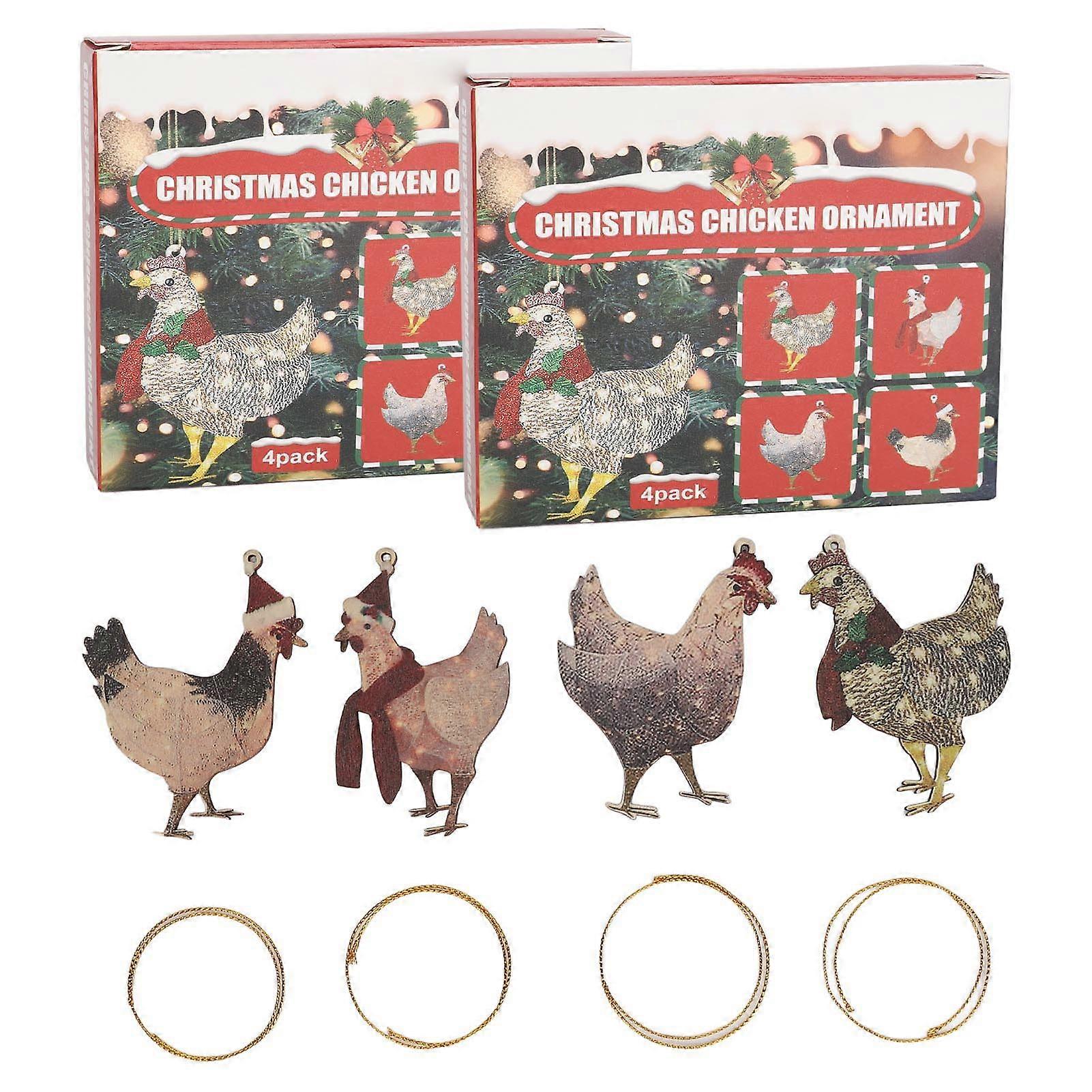 8pcs Cute Chicken Pendant Set Wooden Chick Hanging Ornaments