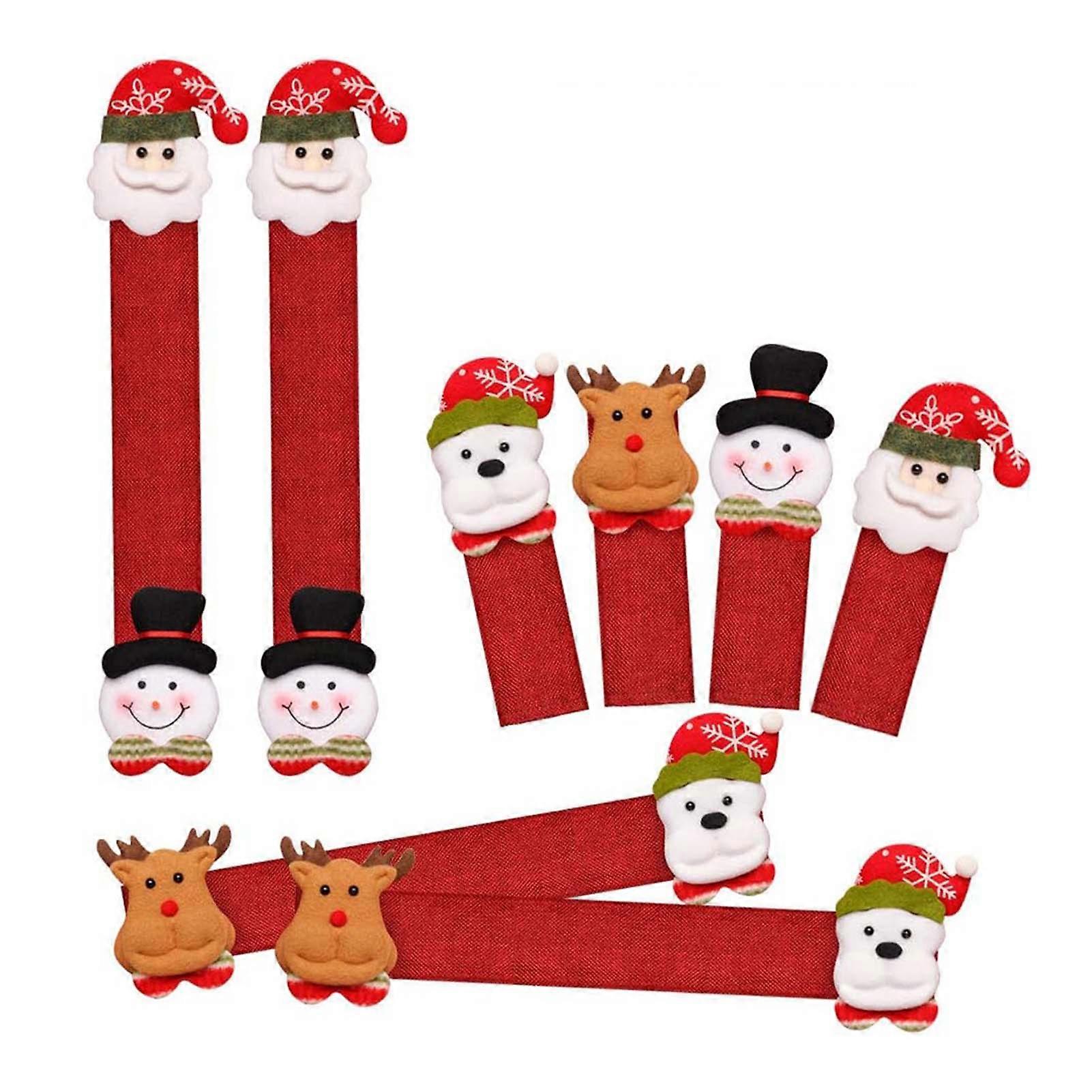8Pcs Christmas Refrigerator Handle Covers Santa Snowman Bear Elk Kitchen Appliance Covers Fridge Microwave Oven Dishwasher Door Handle Protectors