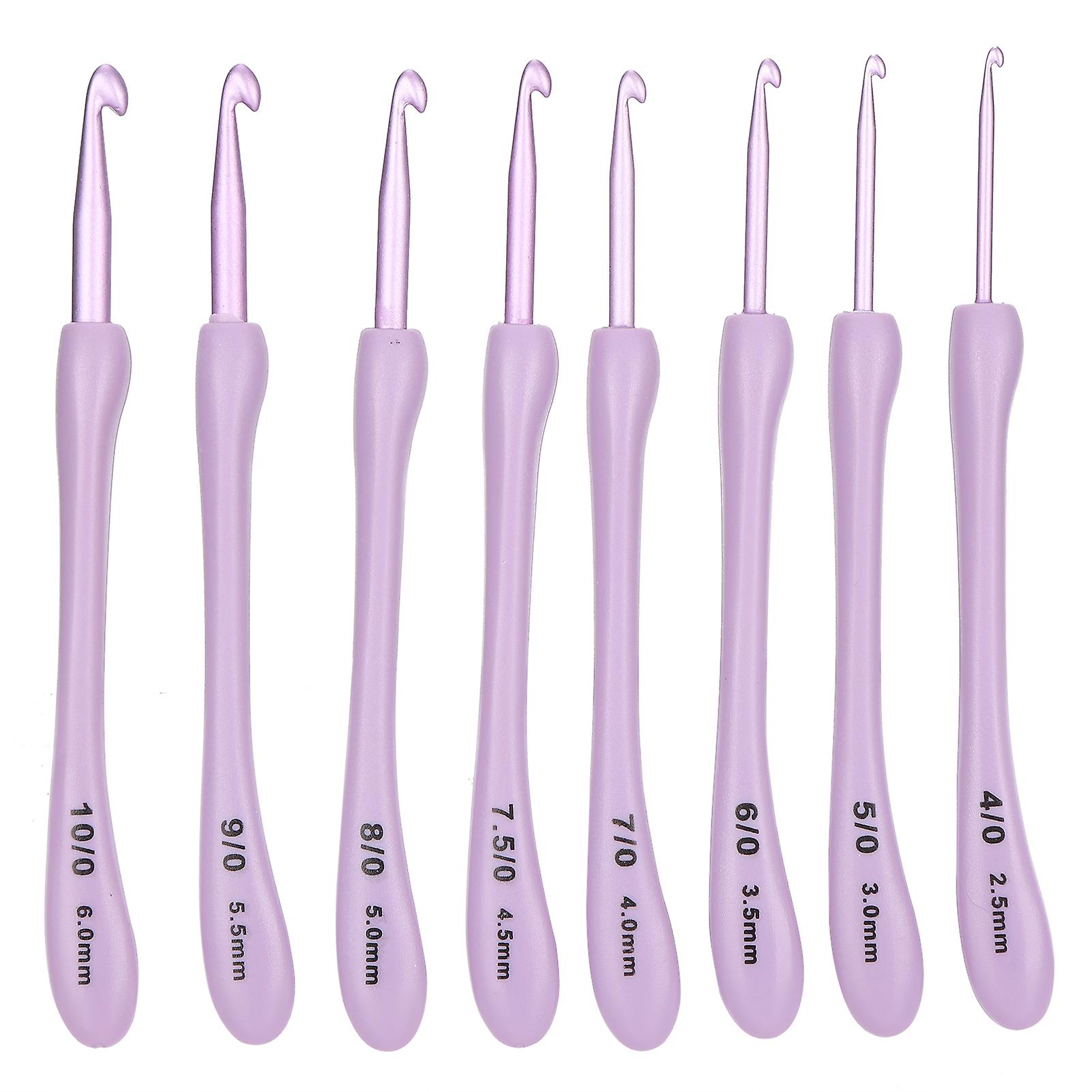 8Pcs Crochet Hook Set Alumina Needle Plastic Handle Knitting Tools Household Supplies Purple