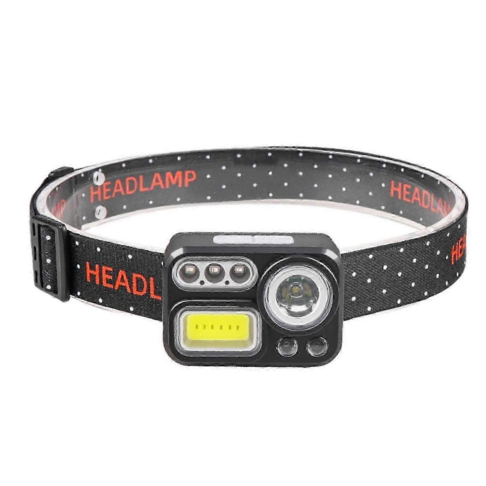 User-friendly Design: This headlamp is designed with a induction mode making you can operate the headlamp without touching the lamp. Fit Occasions: This head torch is a good tool for any outdoor activities like camping hiking mountaineering running jogging and so on. High Brightness: This waterproof headlight is well crafted and adopt XPE and COB light bead which can deliver a bright light beam. IPX4 Waterproof: This head torch features good water resistant you don't need to worry about the rain problem. 8 Modes: This headlamp allows you to adjust the light modes and there are 8 modes for you to choose from. Specification: Material: ABS. Color: Show as picture. Size: Approx. 6x3.3x4cm/2.36x1.30x1.57 inch. Battery: Rechargeable battery(Build-in). includes: 1 Piece Headlight(with 1 Piece Headband 1 Piece USB Cable)