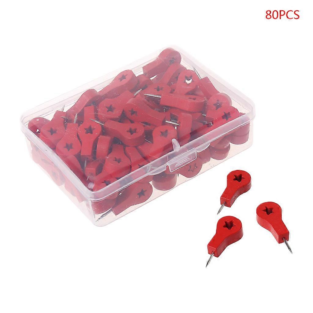80 Pcs Map Markers Wooden Drawing Photo Wall Studs Cork Board Pins Thumbtack Pushpins Painting Tools Red