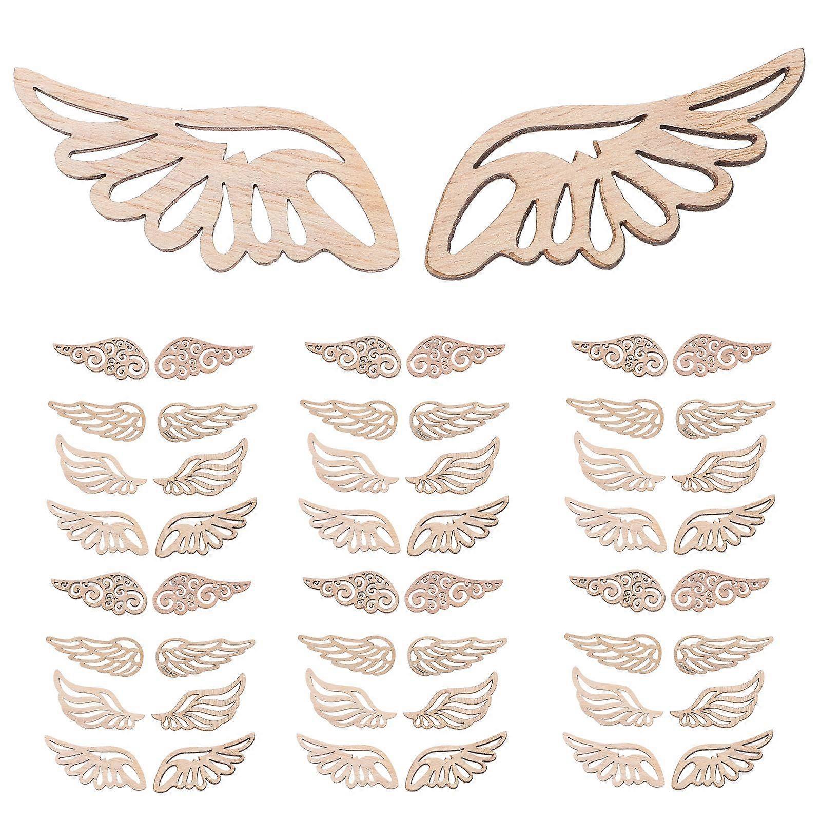 80pcs Angel Wings Wooden Patches Adorable No Hole Wood Chips Creative DIY Accessories for Crafts