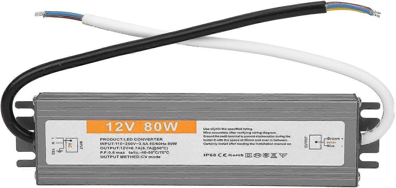 80W IP68 Waterproof LED Driver Transformer - DC 12V/24V Switching Power Supply