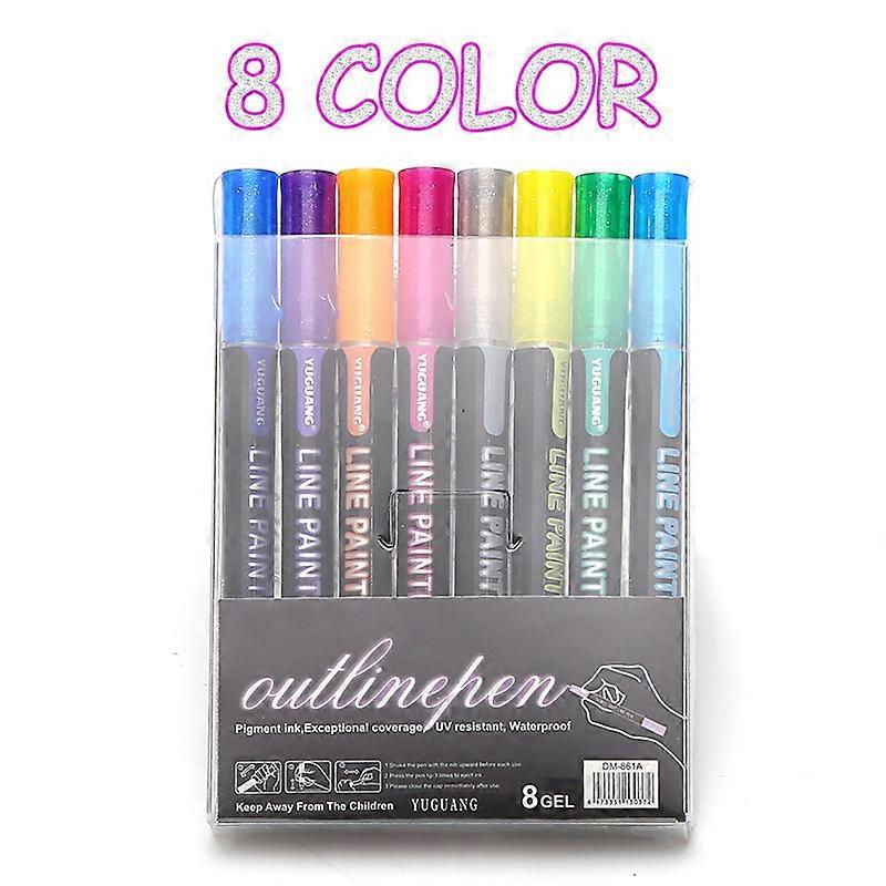 8/12Pcs Glitter Metallic Double Line Outline Pens Art Drawing Diary Painting Pens