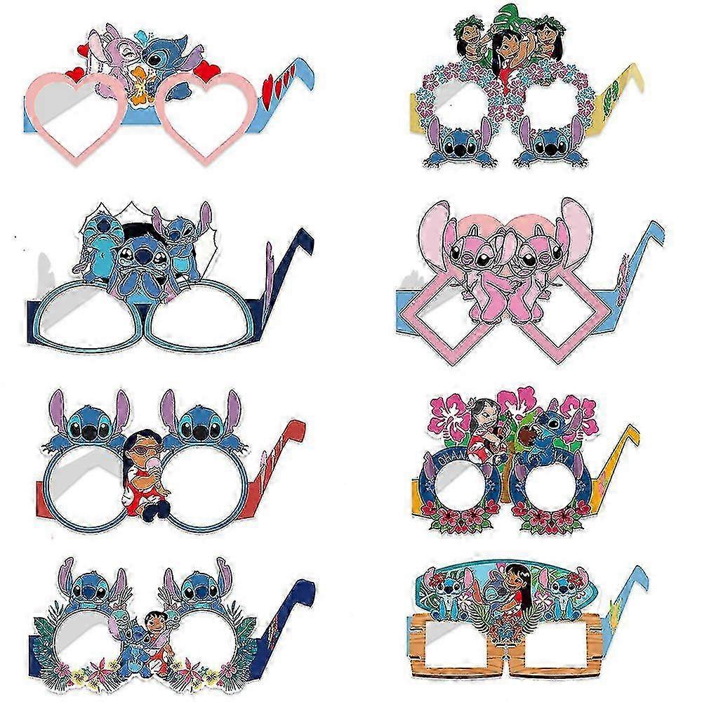 8/16/24 Pcs Lilo & Stitch Party Funny Paper Glasses for Summer Party Photo Booth Props,Beach Party Supplies Novelty Gifts