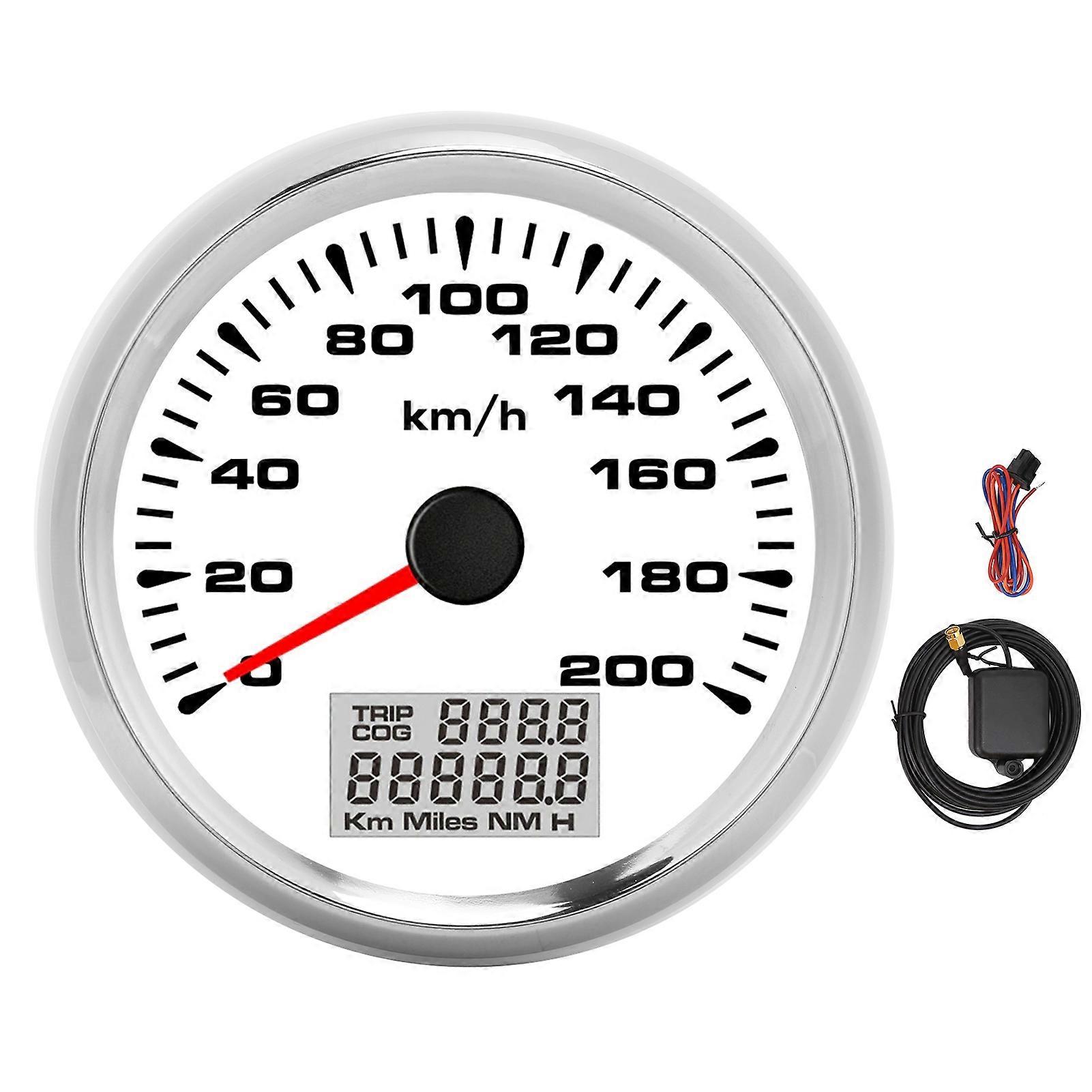 85mm Analog GPS Speedometer 200km/h Waterproof 7 Backlit White Dial Chrome Bezel for 12/24V Marine Motorcycle Truck