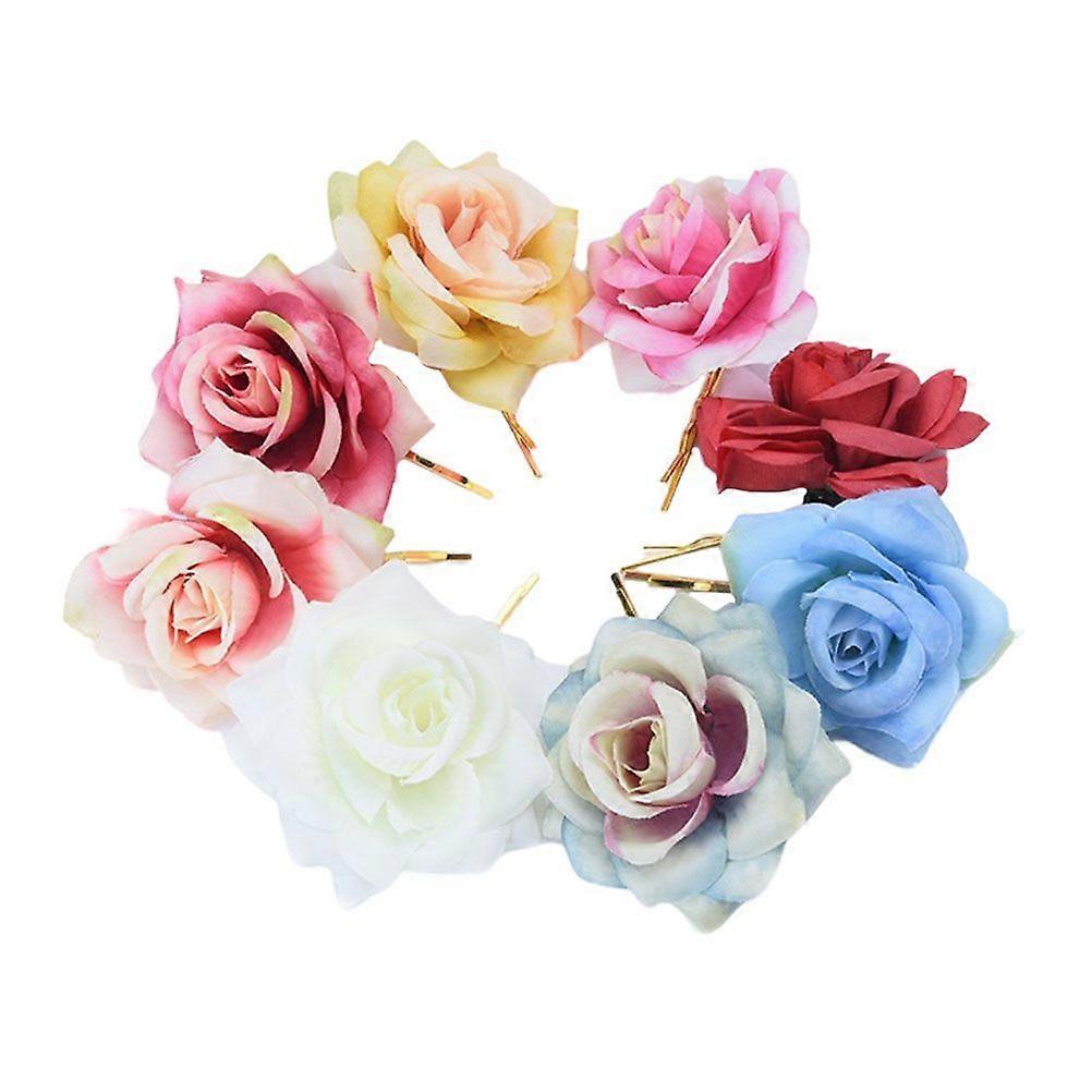 8pcs Hawaii Party Hair Clip Rose Flower Hairpin Bohemia Style Hair Ornament Beautiful Hair Accessory (8 Colors)