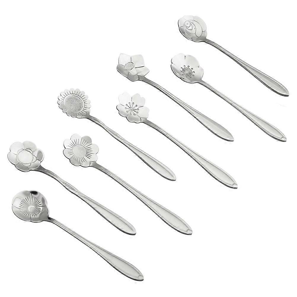 8pcs/Package Creative Flower Spoon Novel Beautiful Spoon for Home Store Office (Cherry Blossom, Rose, Platycodon, Persian Daisy, Sunflower, Sunflower,