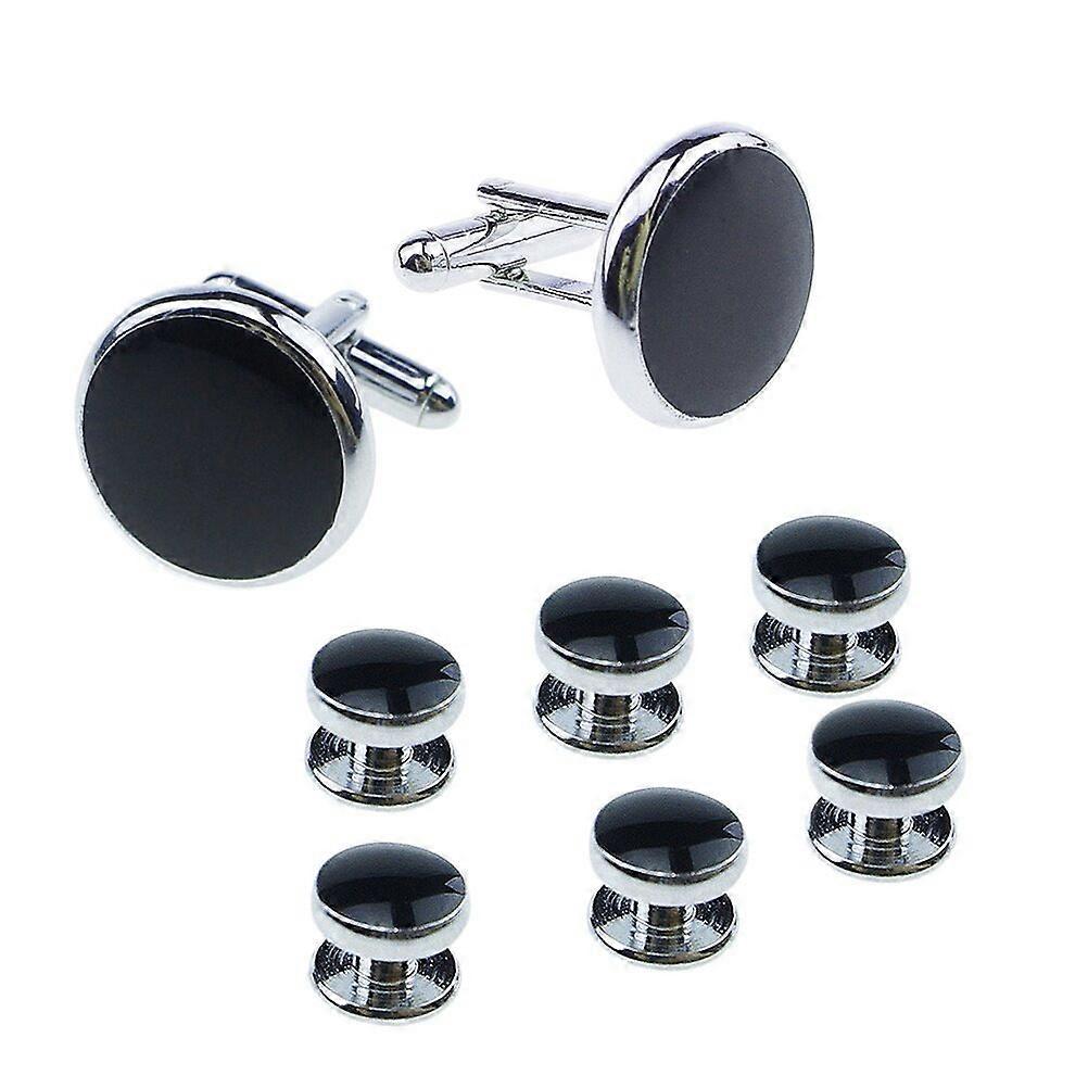 8pcs Mens Cufflinks And Studs Set For Tuxedo Shirts Business Wedding (Black)