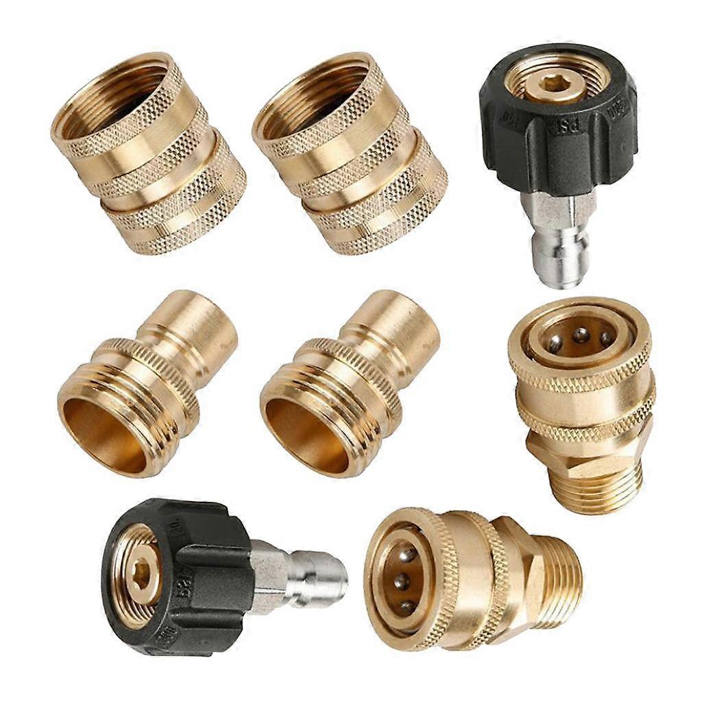 8pcs Brass High Pressure Hose Quick Connect Kit, Replacement Parts, M22 to 3/8'' Pressure Washer Adapter