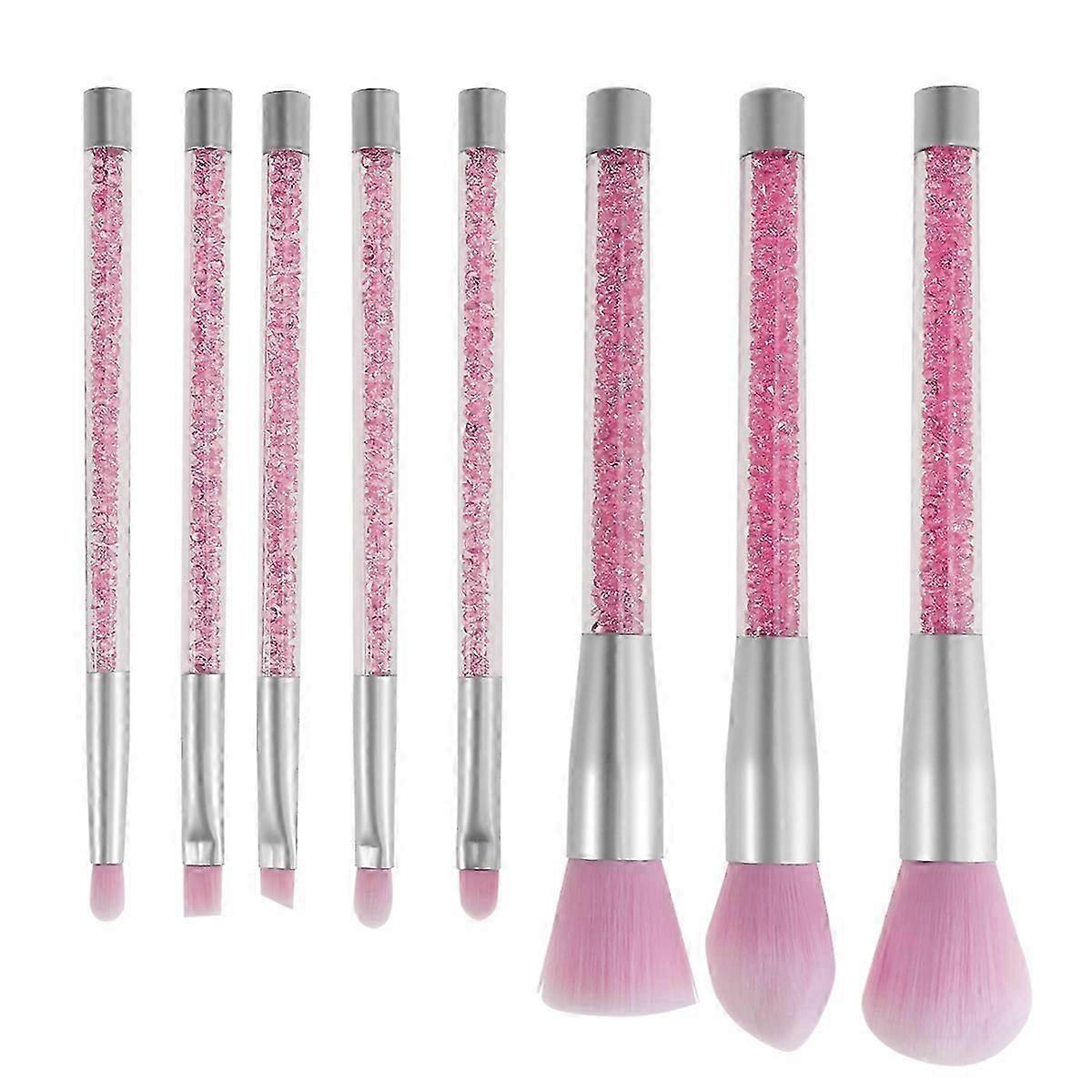 Makeup Tool Ladies Daily Use Pink Transparent Rhinestone Handle Plastic Fiber Material Makeup Brushes 8Set