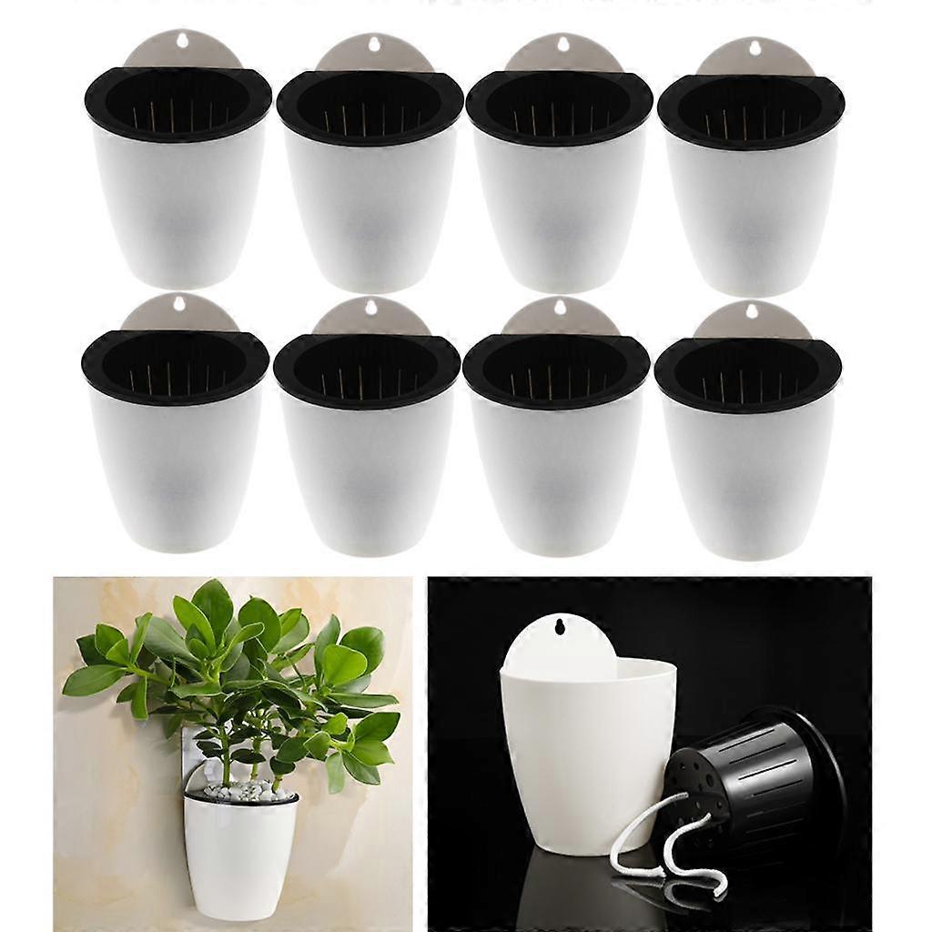 8xGarden Self-watering Plant Flower Pot Wall Hanging Plastic Planter S White