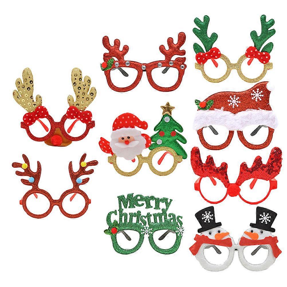 9 Pairs Christmas Glasses, Lightweight Plastic Frames, Festive Photo Booth Eyewear for Adults, Holiday Party Favors, Santa Claus & Snowman Flame