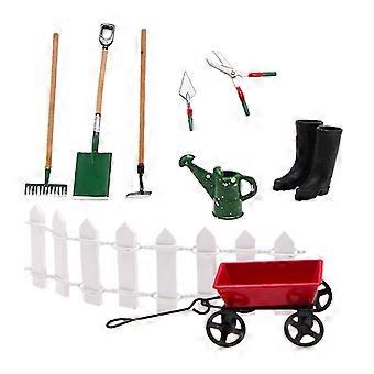 9 Pieces Table for Play Toy Dollhouse Farming Tool Dollhouse Alloy Made Model Portable Table Game for Creative Baby Gift