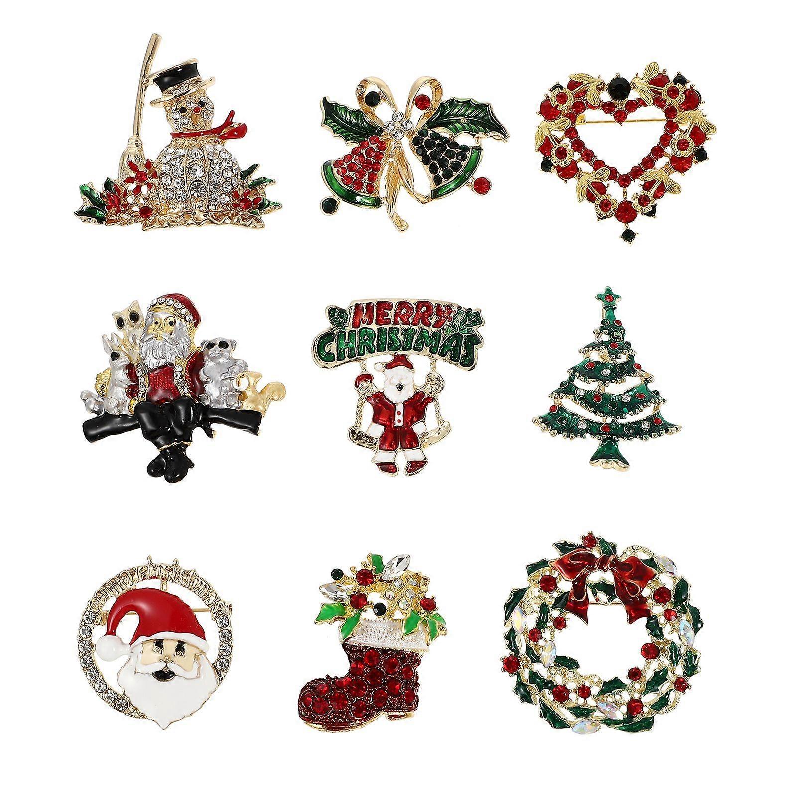 9Pcs Christmas Elements Brooch Creative Clothing Bag Decor (Mixed Style)