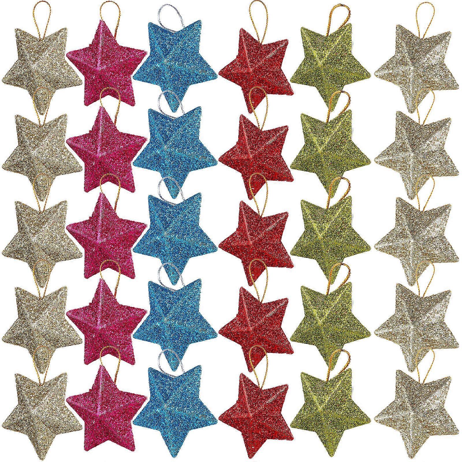 3D Glitter Stars Hanging Ornaments Christmas Star Pendants 90Pcs Festival Atmosphere Enhancement Christmas Party