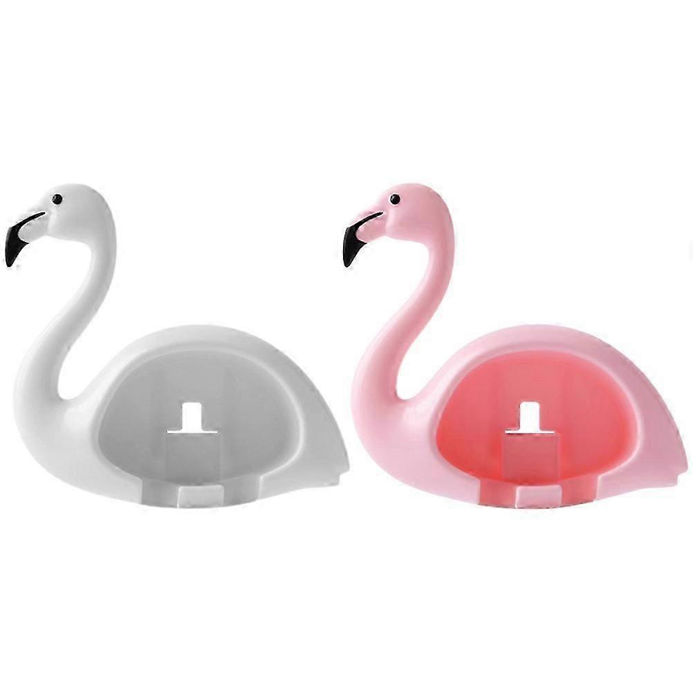 Hanging Toothbrush Holders For Bathrooms Flamingo Shape Wall Mounted Organizer Bathroom Accessories Pink 9.20X9.00X3.50CM 2Pcs