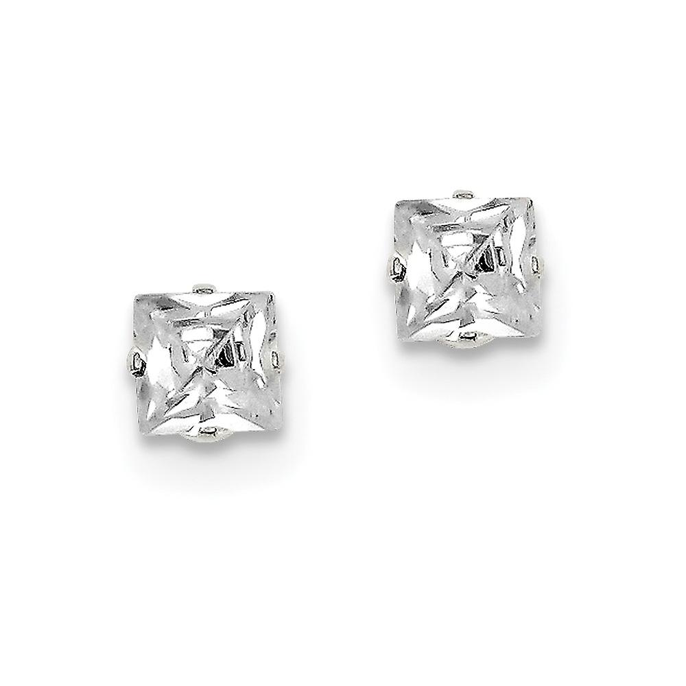 925 Sterling Silver Polished Snap setting Cubic Zirconia 6mm Square Post Earrings 6x6mm Wide Stud Earring for Women