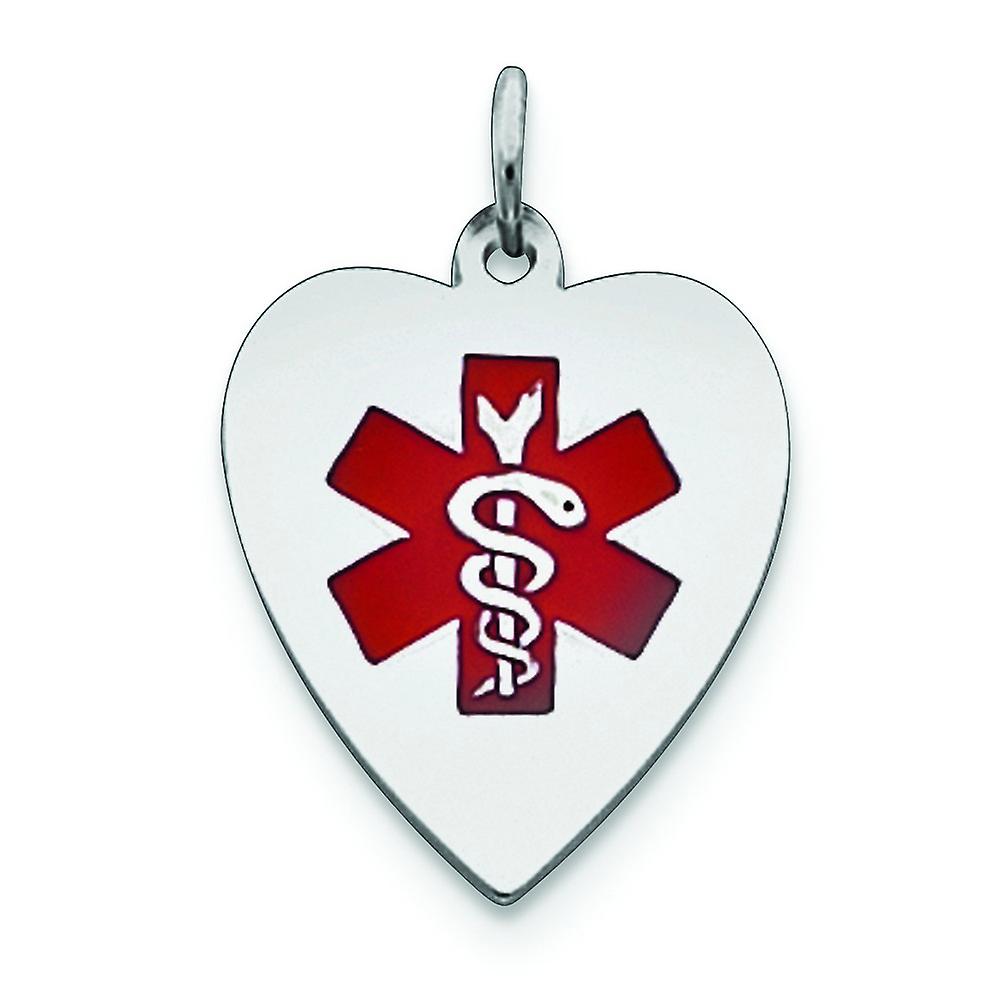 925 Sterling Silver Polished Engraveable Red Enameled Small Love Heart Medical Pendant Necklace 23x19mm Wide-Pendant for