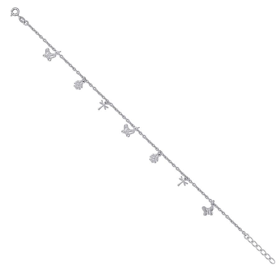 925 Sterling Silver Womens Butterfly Angel Wings Flower Dragonfly Fashion Charms Anklet-Anklet for Women