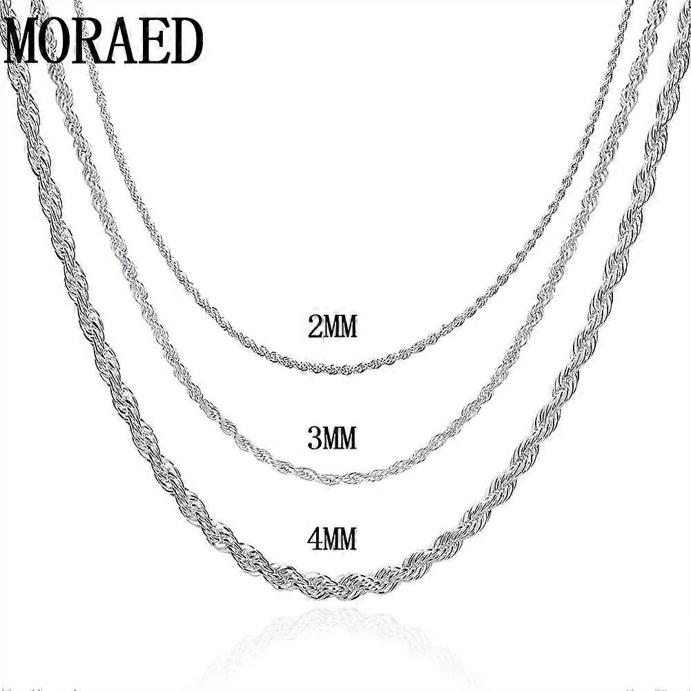 925 Sterling Silver 2MM/3MM/4MM Twist Rope Chain Necklace For Men Women Fashion Jewelry