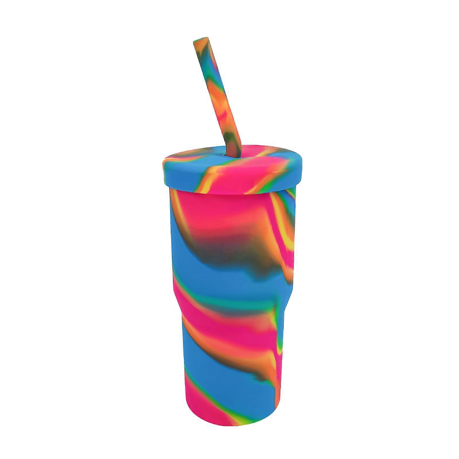 950ML Silicone Tumbler with Straw Lid Large Capacity Food Grade BPA Free Leak-Proof Outdoor Travel Portable Water Bottle Drinking Straw Cup