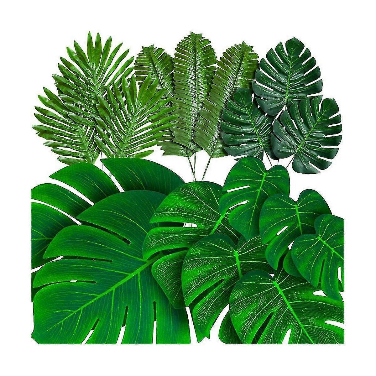 96pcs Palm Leaves Artificial Tropical Monstera Faux Palm Fronds Monstera Stems Luau Hawaiian Party