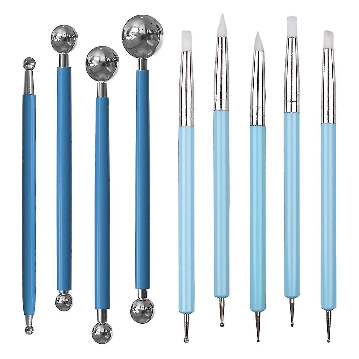 9pcs Dotting Tools, Silicone Clay Sculpting Tool, Ceramic Clay Ball Stylus Dot Painting Tools, Pottery Embossing Tool