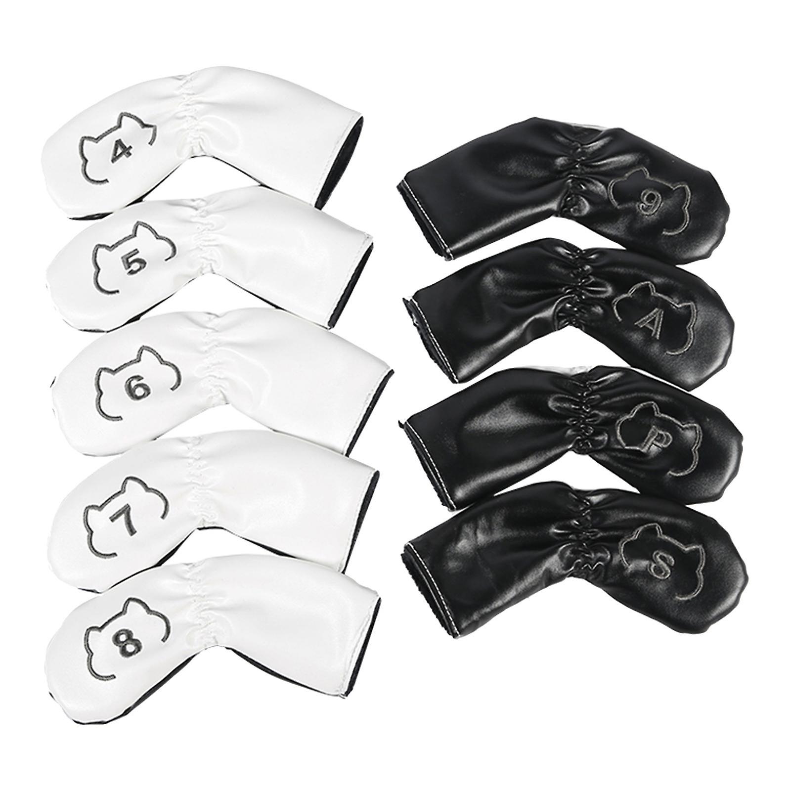 9Pcs Golf Club Head Cover Water Resistant PU 4-9 P A S Golf Wedge Covers Set