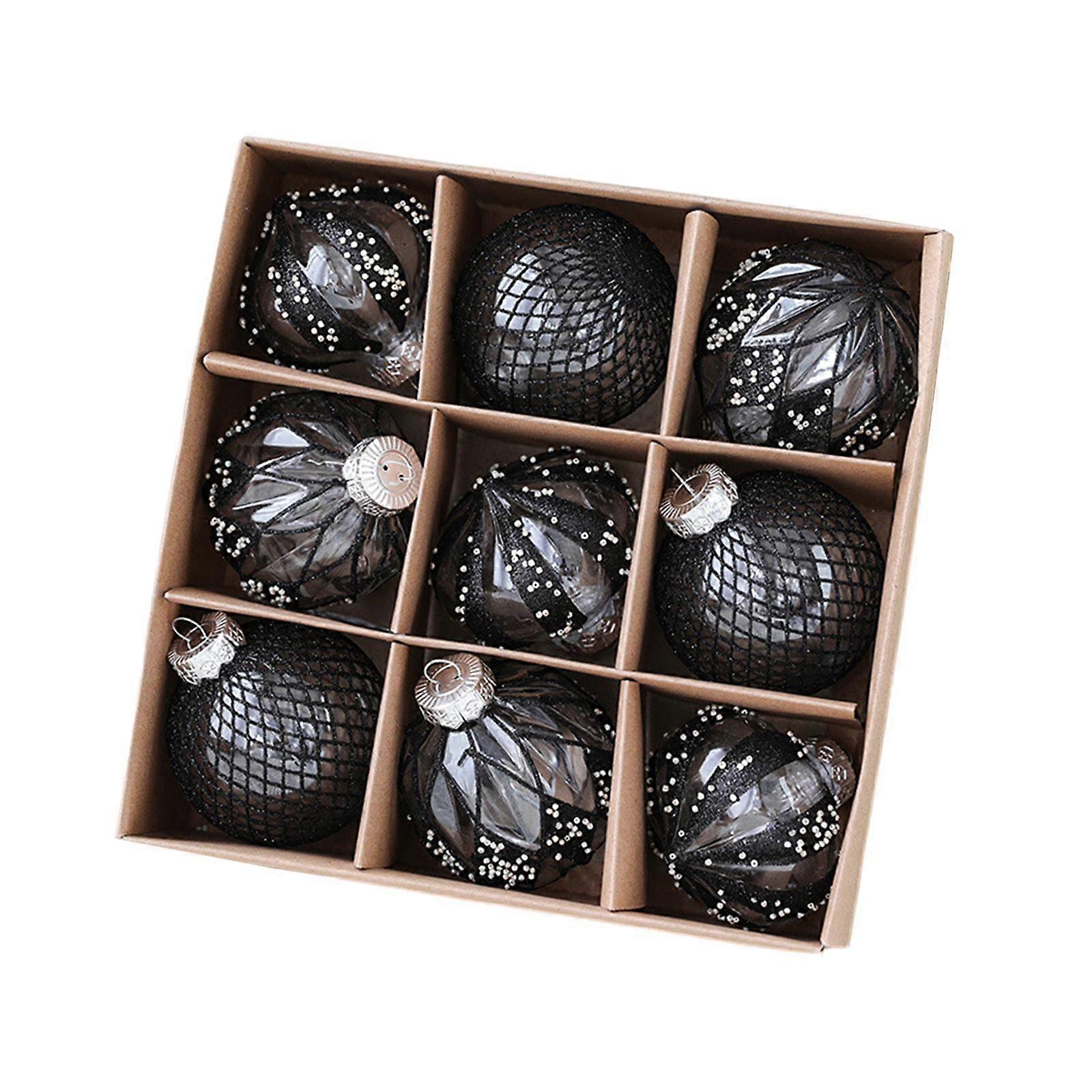 9x Black Christmas Balls Ornaments for Party Favors Halloween Wreath Garland
