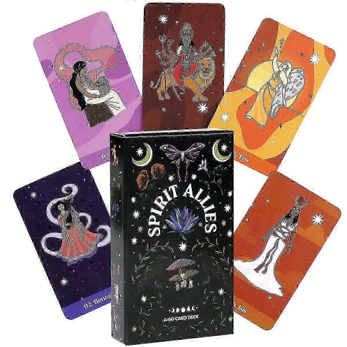 The Spirit Allies Oracle is a divination tool intended for spiritual growth. Each of the 60 cards features unique artwork and a powerful message, offering guidance on various aspects of your life, including relationships, career, and personal development. The deck comes with an electronic guidebook (PDF), providing detailed interpretations for each card and guidance on how to use the deck effectively for oracle card readings.<br>