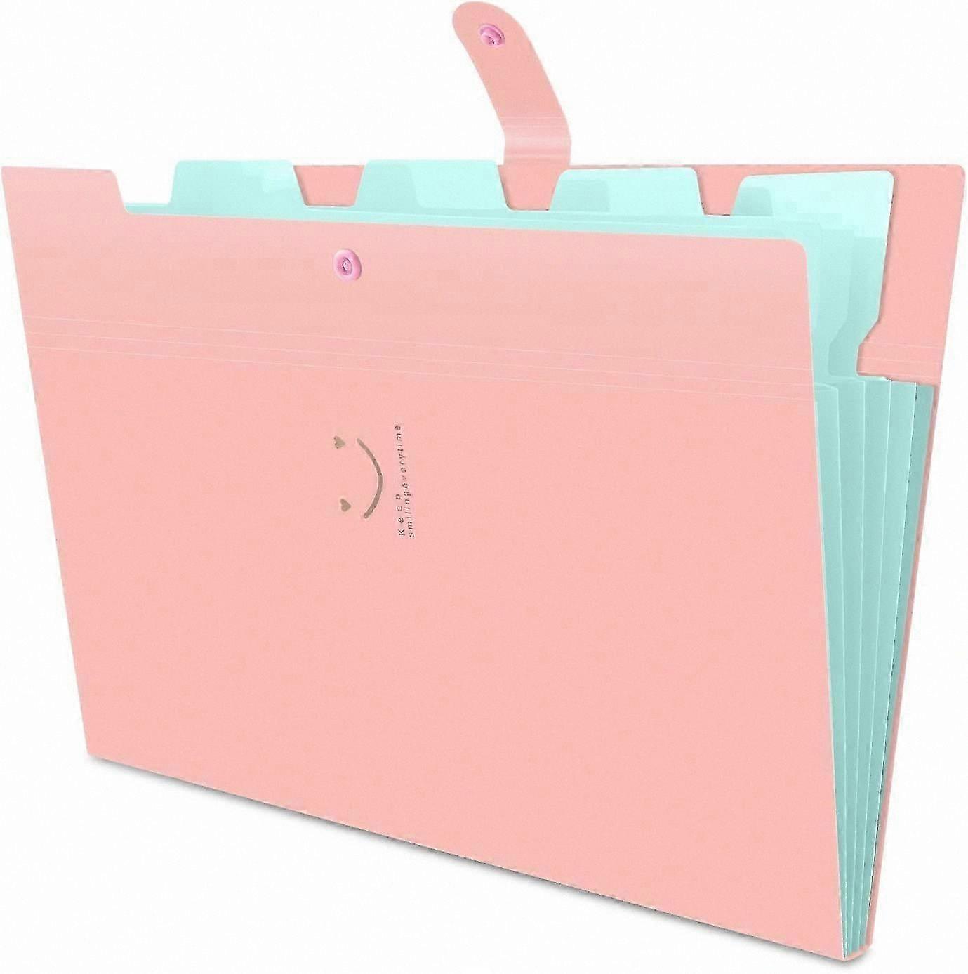 Color: 5 Pockets [Light Green & Pink] Material: Polypropylene Sheet Size: Letter, A4 Item Dimensions L x W x H: 32.5 x 24.5 centimeters About this item Fashionable Design: The file folder features an accordion-style shape with a two-tone color design. 5 Pockets with Tabs: The expanding folder is divided into 5 sections, allowing for organized storage of various documents. Each section includes labeled tabs for easy identification. High Quality: Made from durable Polypropylene (PP) material, which is non-toxic and resistant to tearing and deformation. Versatile Use: Ideal for home, office, or school organization. Suitable for storing documents, planning events, or as a practical gift.