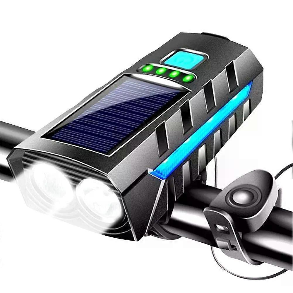 ABMO Solar Road Bike FrontLamp USB Rechargeable Cycling Lantern Power Display High Beam Bicycle Flashlight for Night Riding B