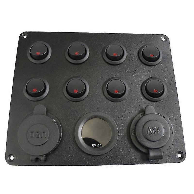 Are you looking for a professional but affordable combination switch panel? Our professional combination switch panel will meet your needs well. Made of high-quality materials, sturdy for long lastinguse, not easy to break and deform. With high temperature resistance, more durable and stronger than plastic or wooden panel. Also come with several accessories which are already installed. Features - Color:Black. - Material:ABS, aluminum alloy, rubber, PBT. - Size: About15.00X12.00X9.00cm/5.89X4.72X3.54inch. - Working temperature: -25/-80. - Maximum power: 240W. - Input voltage: DC12V/24V. - Cigarette lighter power: 120W. - Output current: 10A~20A. - Protection level: IP65. - Light color: Blue light. -Adopted by high grade material, sturdy and durable for long-lasting use. -Come with wire and other installation tools, suitable for vehicle, yacht, ship, caravan, truck, etc. -Good switch panel for vehicle lights, such as headlight, fog light, width light and more. -Dual USB charging ports, charging your phones, tablets, cameras, GPS, wireless headphones, etc. -With digital voltage display helps to monitor vehicles electrical safety, provide safe driving.