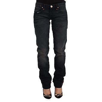 Acht Women's Black Washed Cotton Skinny Denim Low Waist Jeans