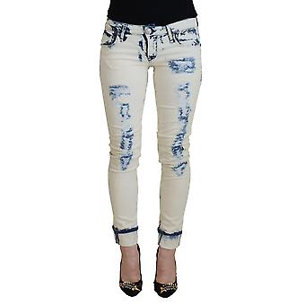 Acht White Blue Cotton Skinny Women Tattered Denim Jeans