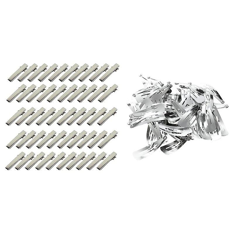 AD-100 Pcs Silver Hair Clips :50 Snap Hair Clips 40Mm Craft Bow & 50 Pcs Mini Crocodile Clips For Hair DIY~5429