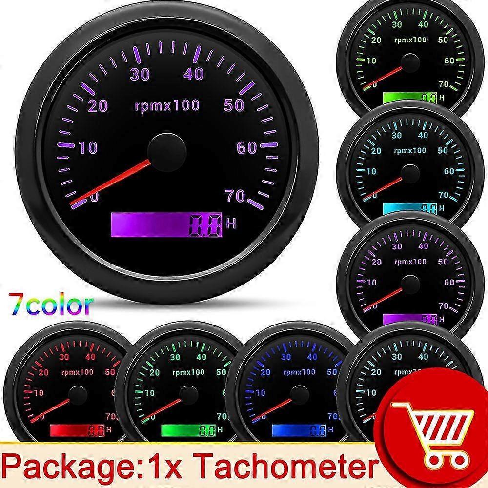 AD 7K Tachometer 85mm Tacho Meter Gauge 7 Colors Backlight LCD Hourmeter Tachometer for Boat Marine Car Diesel Gasoline Engine