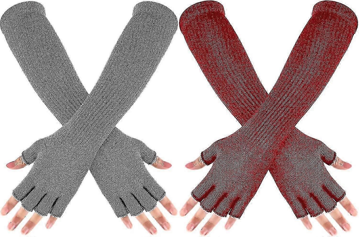 Althee 2 Pairs Winter Fingerless Gloves Long Thermal Knitted Mittens Stretchy Arm Warmers Half Finger