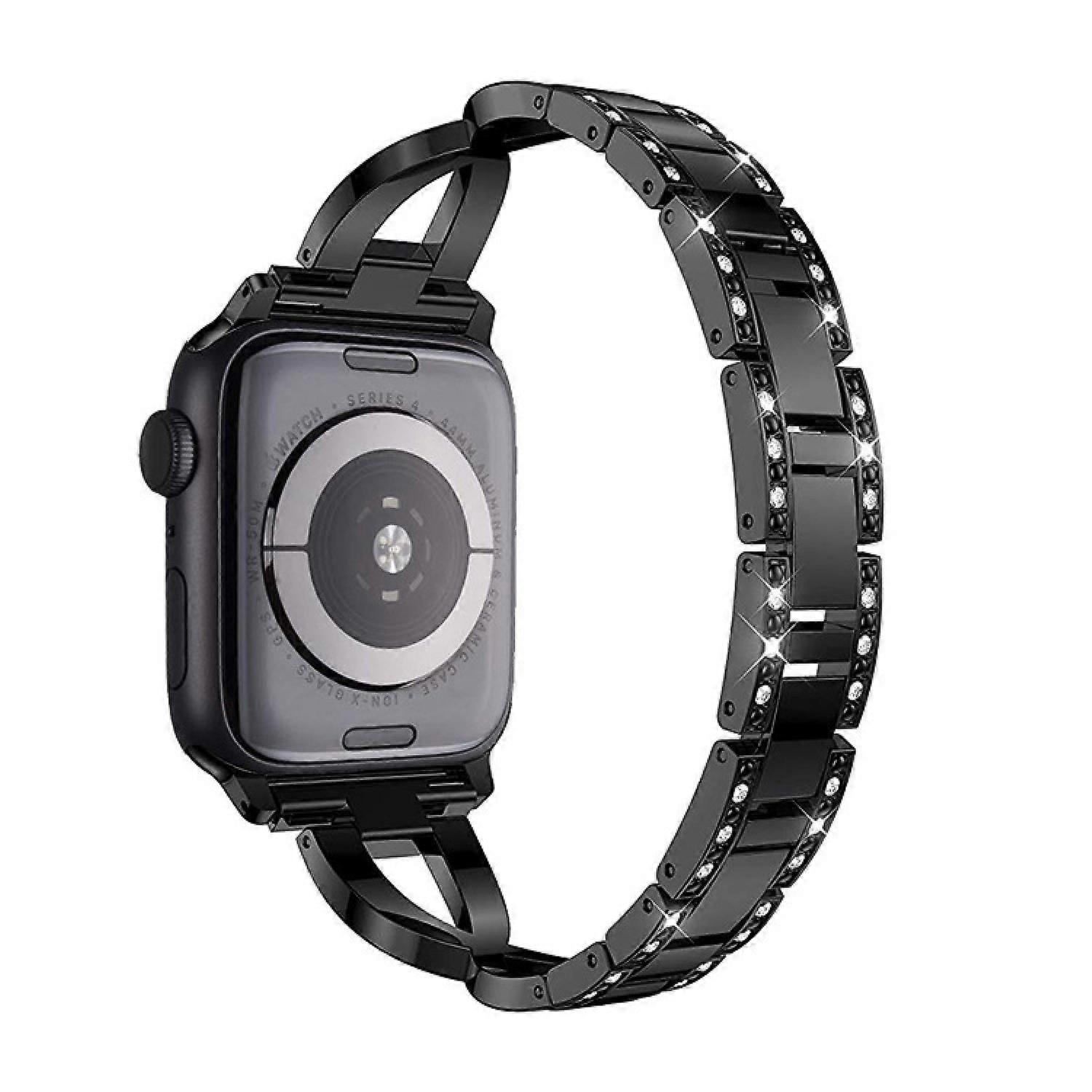 Compatible with Apple Watch Band Bling Diamond Rhinestone Replacement Metal Strap --- Black 42/44/45mm